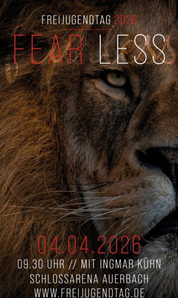 Zum Freijugendtag wollen wir gemeinsam entdecken, dass Angst uns nicht bestimmen muss. Jesus hat die Angst besiegt. Er lädt dich ein, mutig weiterzugehen – mit ihm an deiner Seite. Herzliche Einladung in die Schloss Arena in Auerbach!